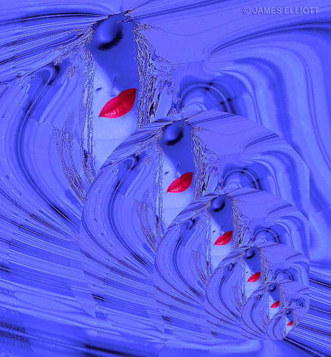 This highly popular image shows Elliott innovating again with pioneering work using fractals, photography and computer generated imagery. The trademark colour palette is much in evidence and the image is imbued with a rare grace, a beauty frozen in time forever. This is ironically, of course, also a comment on the medium of Photography, which in the hands of a master, does indeed freeze beauty forever. The image is steeped in mystery and mythology, calling to mind the Ice and Egyptian Queens of cultures lost. The brilliant use of perspective gives the image an incredible sense of depth.