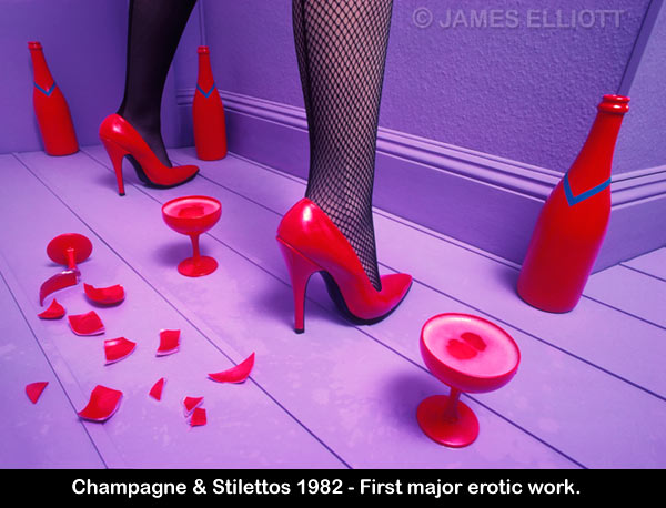After a decade of immense creativity, without any erotica, Elliott creates his first major erotic work : Champagne & Stilettos. The image took 107 hours of work and shows a new mastery of colour. Gone are the bells and whistles common in first symphonies and here was a vastly more restrained and beautiful palette. This was a glimpse of the pioneering fetish erotica which was to come.